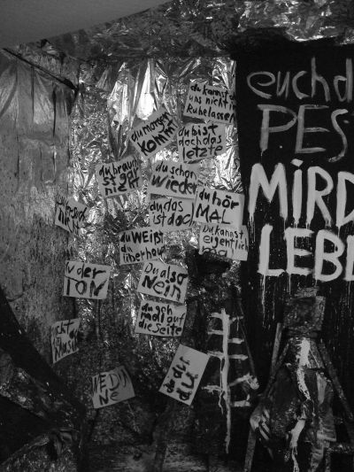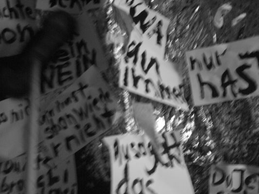 Als Zeichen und Protest gegen die Gewalttätigkeiten gegen meine künstlerische